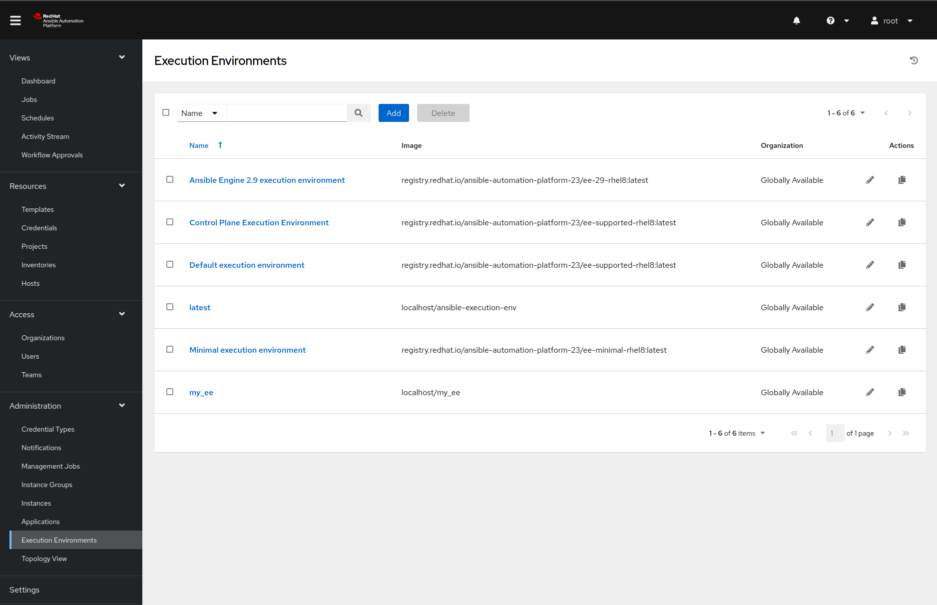 We can also see the newly created execution environment in our web interface for the Ansible Automation Platform.