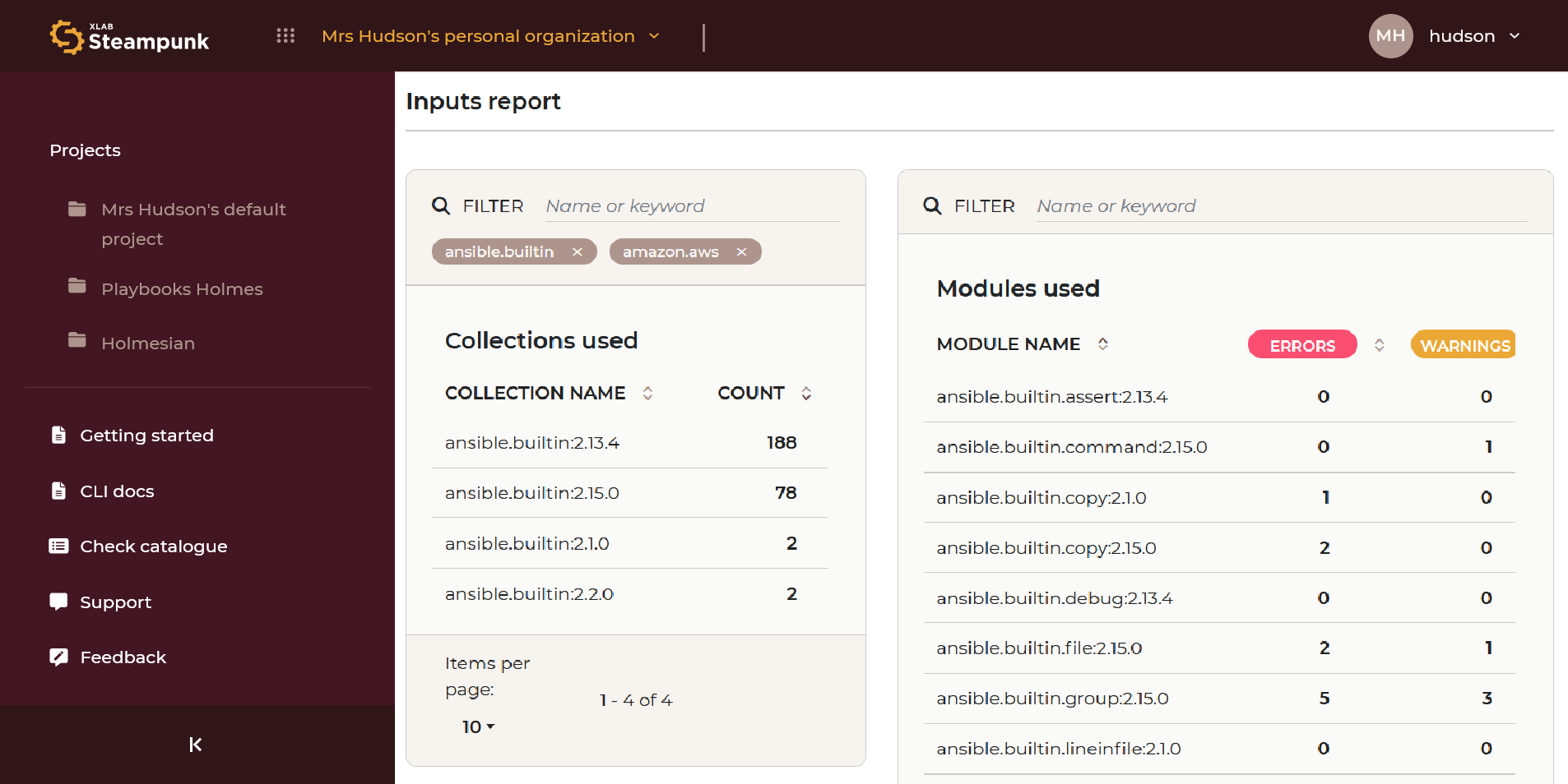 Before using the chosen module in your playbook, head over to the Steampunk Ansible Collections Documentation. It’s a comprehensive repository of all versions of all Ansible Collections available on Ansible Galaxy, generated by XLAB Steampunk team of Ansible experts. Not only can you easily browse all versions of all collections in one place, but each example is verified with Steampunk Spotter so you can instantly see its quality and decide if it’s safe to use in your playbooks.
