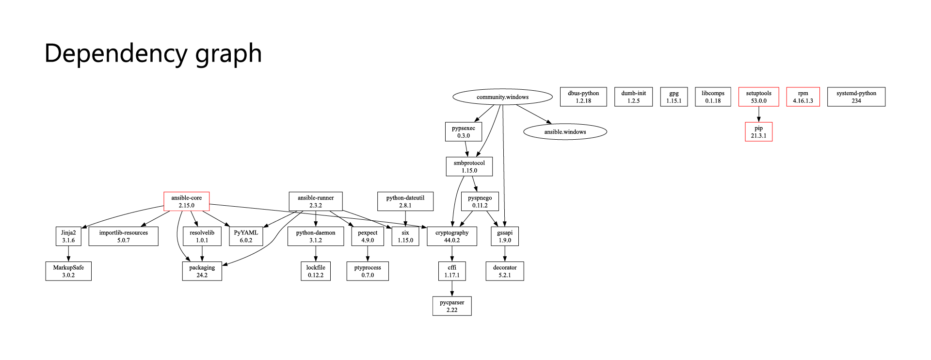 What it is: SBOM provides a comprehensive inventory of all dependencies, identifies and evaluates any vulnerabilities present within the execution environment your playbooks are being executed in.