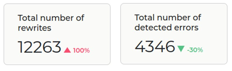 The Deutsche Telekom MMS team was especially satisfied with the Spotter’s rewriting feature, which they used extensively, especially in the beginning. This feature helped them easily increase code quality, significantly reducing the workload and saving a lot of time. “The total number of rewrites at the beginning was quite high, but I think this is a good sign because it is automatically done by Spotter. We managed to lower the total number of detected errors in the end. This is a valuable feature for us, and it saved us a lot of time,” explains Andreas.