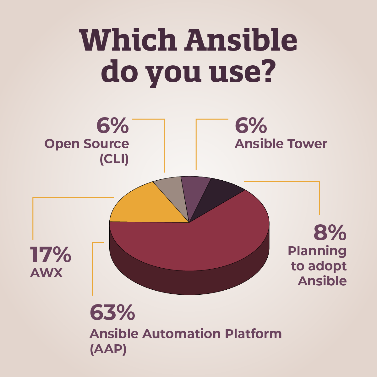 With 63% of users already using Ansible Automation Platform, it’s clear that teams are prioritizing scalable, enterprise-grade solutions for managing increasingly complex environments. At the same time, 53% of respondents said that security and compliance are top priorities when automating Ansible Playbooks—showing a strong push toward automation that is not only efficient, but also secure and reliable.