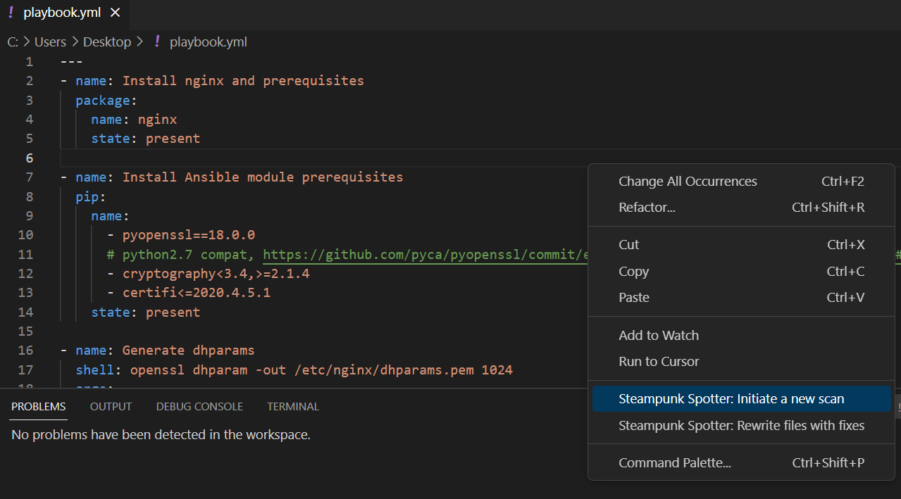 The Spotter VSC extension not only offers enhanced scanning abilities but offers an Assisted Playbook Writing feature that you can explore in this blog post or watch this short demo.