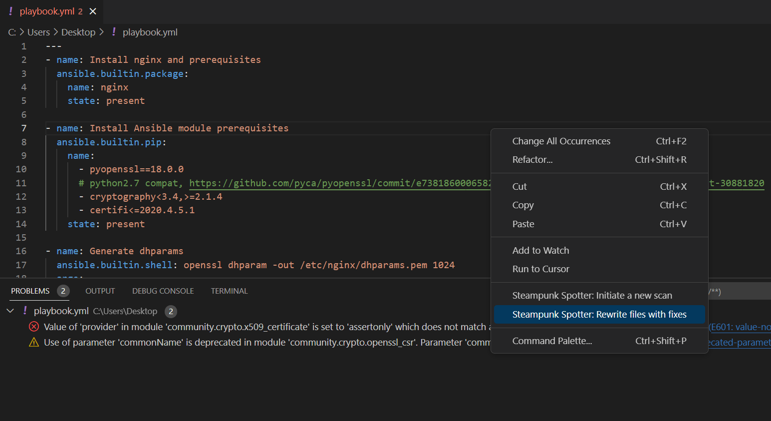 This blog post explores the Visual Studio Code (VSC) extension of Steampunk Spotter, a powerful platform that helps you identify and fix errors in your Ansible content, making automation more reliable, secure, and effective.