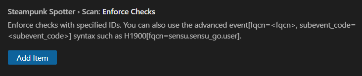 Enforcing Checks: If you want to enforce specific checks, you need the ID of the check you wish to enforce. You can find the check ID in the check catalogue within the Spotter app. Add the check ID to enforce it during the scanning process.
