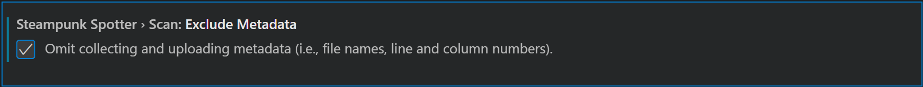 Exclude Metadata: Omit collecting and uploading metadata, i.e., file names, line, and column numbers.