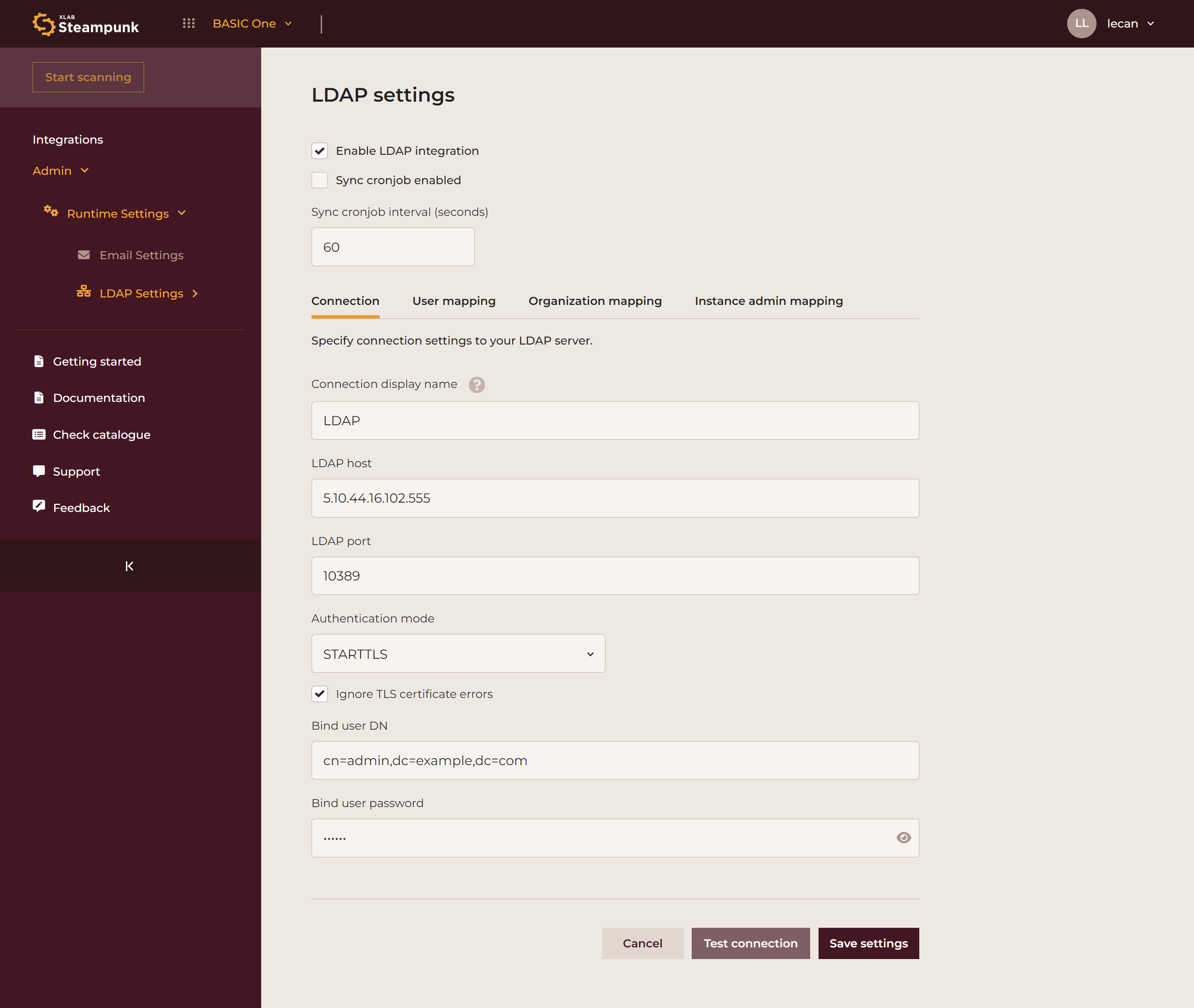 With Spotter, you specify your LDAP search query and filters and let Spotter do the mapping for you. Each user gets a username and email as identifiers (but the email is optional), and they can log in with any of them. Additionally, you can map basic attributes such as their name directly from LDAP, which comes in handy in the enterprise reporting functionality, where you can see scan summaries with regard to users.