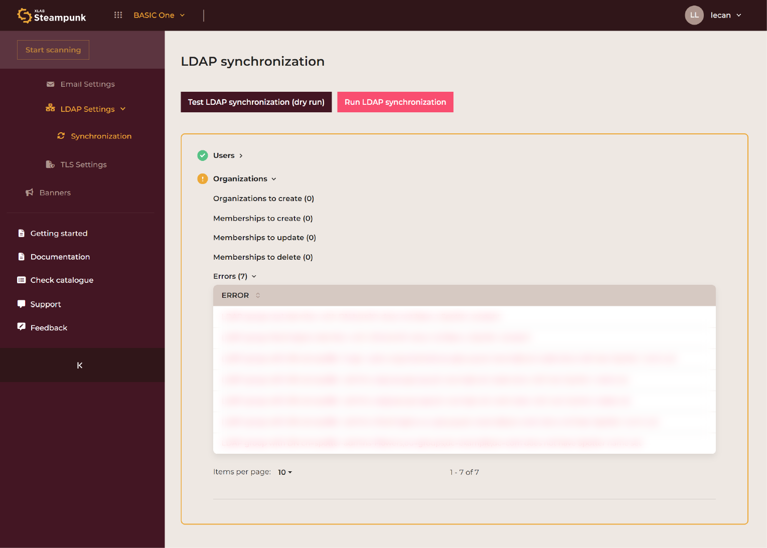 However, what’s more useful are the testing buttons for user, organization and permission mappings. Since LDAP is quite a complex beast (it doesn’t really live up to the L in LDAP), filters can get unwieldy, and not everyone has an LDAP browser handy or wants to copy-paste configuration between the browser and another tool. Instead, when you click the test button, Spotter directly shows you what your LDAP mapping queries return, along with any errors and warnings there are or that could pose problems for synchronization. You get sortable tables for users and groups, where you can directly see the effect of your mappings. Verify whether the usernames and emails look correct, discover conceptual incompatibilities between Spotter and your LDAP schema and see how much actually gets mapped, all without performing a single destructive operation!