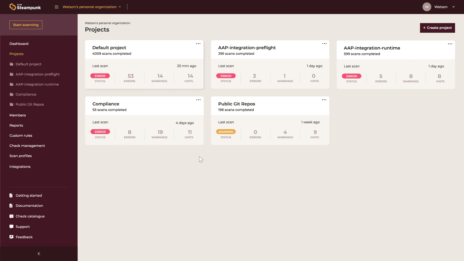 . By default, your scan results are stored in the first project of your first organization, but if you want to organize your scans or have multiple organizations or projects to bring some order to your automation workflows, then “Projects” is your go-to feature.